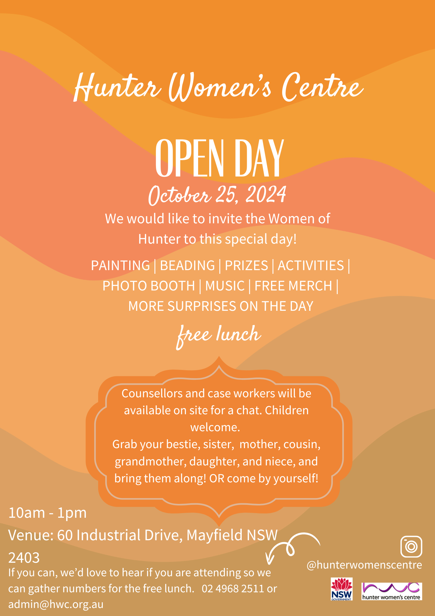 Hunter Women’s Centre is a non-government, not-for-profit, community based organisation who provides services to improve the health and well-being of the women in the Hunter.